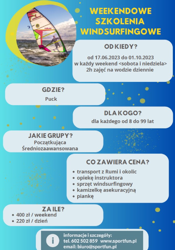 Zapraszamy do Pucka na Weekendowe Szkolenia od 17.06. do 01.10.2023 r.